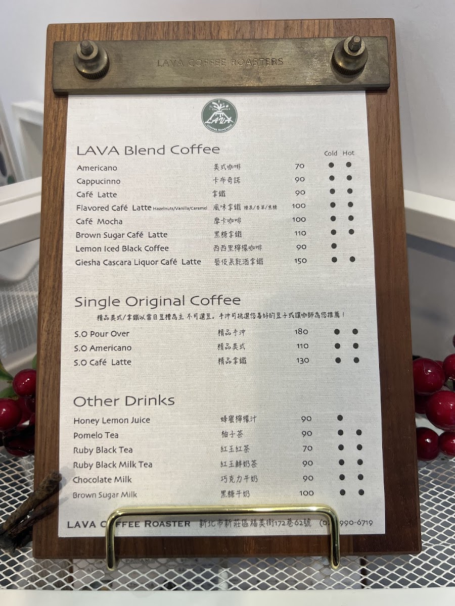 LAVA COFFEE ROASTERS 精品咖啡專賣店 Menu